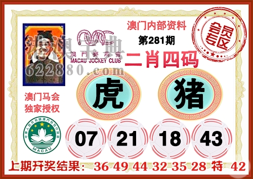 281期:绝杀三肖【牛猪猴】开?00中 |